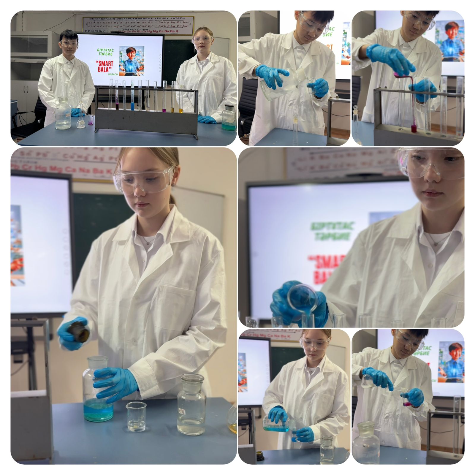 Есет батыр атындағы мектеп-бақшасында “Smart bala” жобасы аясында 8 “в” сынып оқушылары “Қоршаған ортадағы сапалық реакциялар”тақырыбында смарт-жоба орындады.