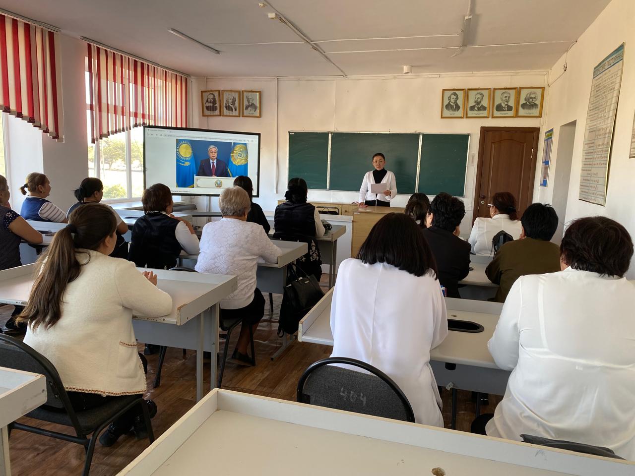 Іс-шараның мақсаты – ұжым мүшелерін Жолдаудағы маңызды міндеттермен таныстыру, білім беру саласындағы жаңалықтар мен басымдықтарды түсіндіру және оларды мектеп тәжірибесіне енгізу жолдарын талқылау.