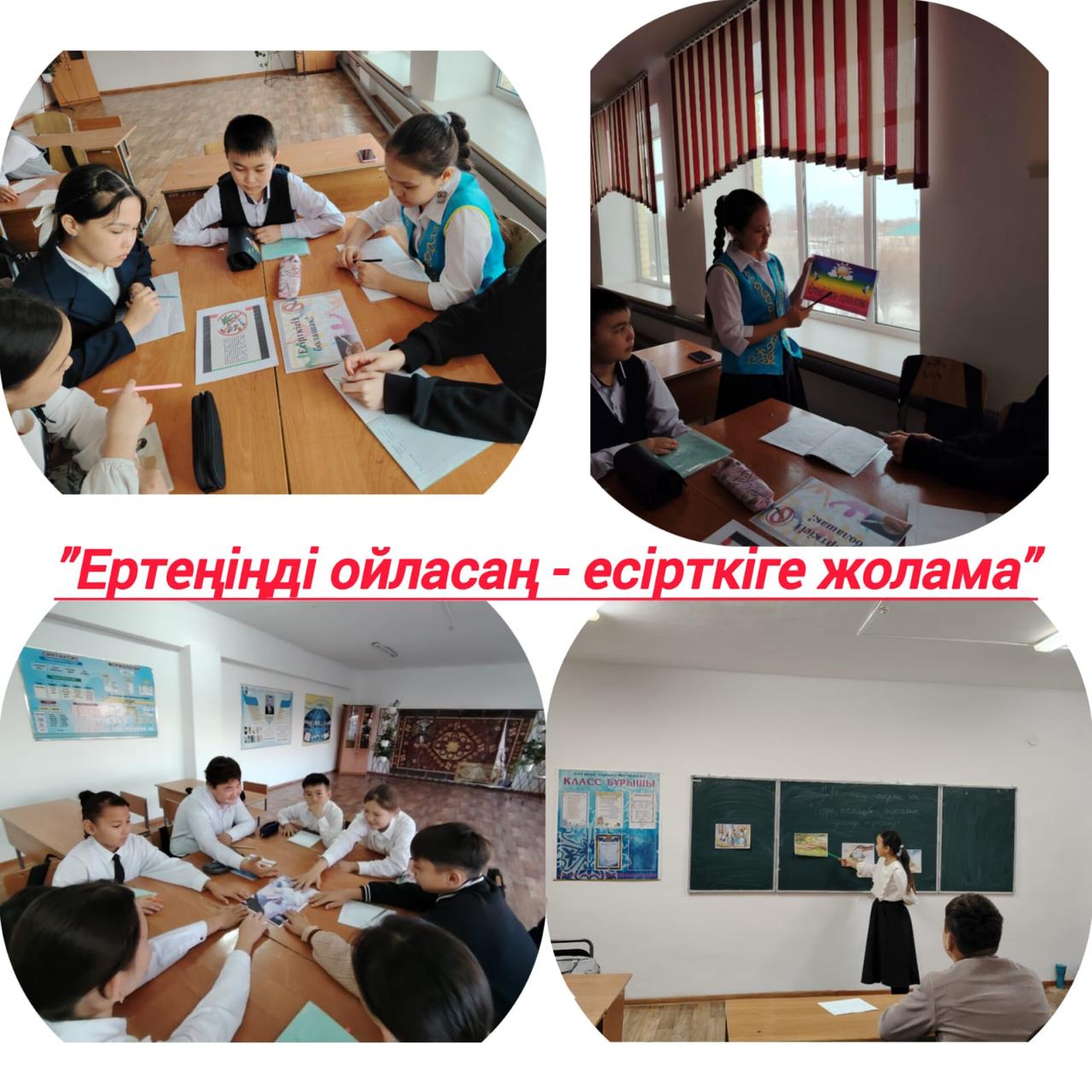 17.03.2025 ж. Оқушыларға «Нашақорлық қоғам дерті», «Ертеңіңді ойласаң есірткіге жолама!» тақырыптарында тәрбие сағаты өткізілді. Мақсаты: психикаға белсенді әсер ететін зиянды заттар туралы ақпарат беру, олардың адам ағзасына кері әсерін түсіндіру арқылы салауатты өмір салтын ұстануға шақыру. Сабақ барысында оқушыларға «темекі шегетін қоспалар» мен «синтетикалық есірткілерді» тұтынудың ауыр салдары, лудомания, нашақорлықтың алдын алу, интернетке тәуелділік бағытында ақпараттық-танымдық біліммен қамтамасыз ету шаралары қамтылды. Адамзаттың басты мәселесі – психологиялық тәуелділік, есірткіні тұтыну себептері мен зардаптары туралы толық түсіндірме жасалды. Білім алушылар